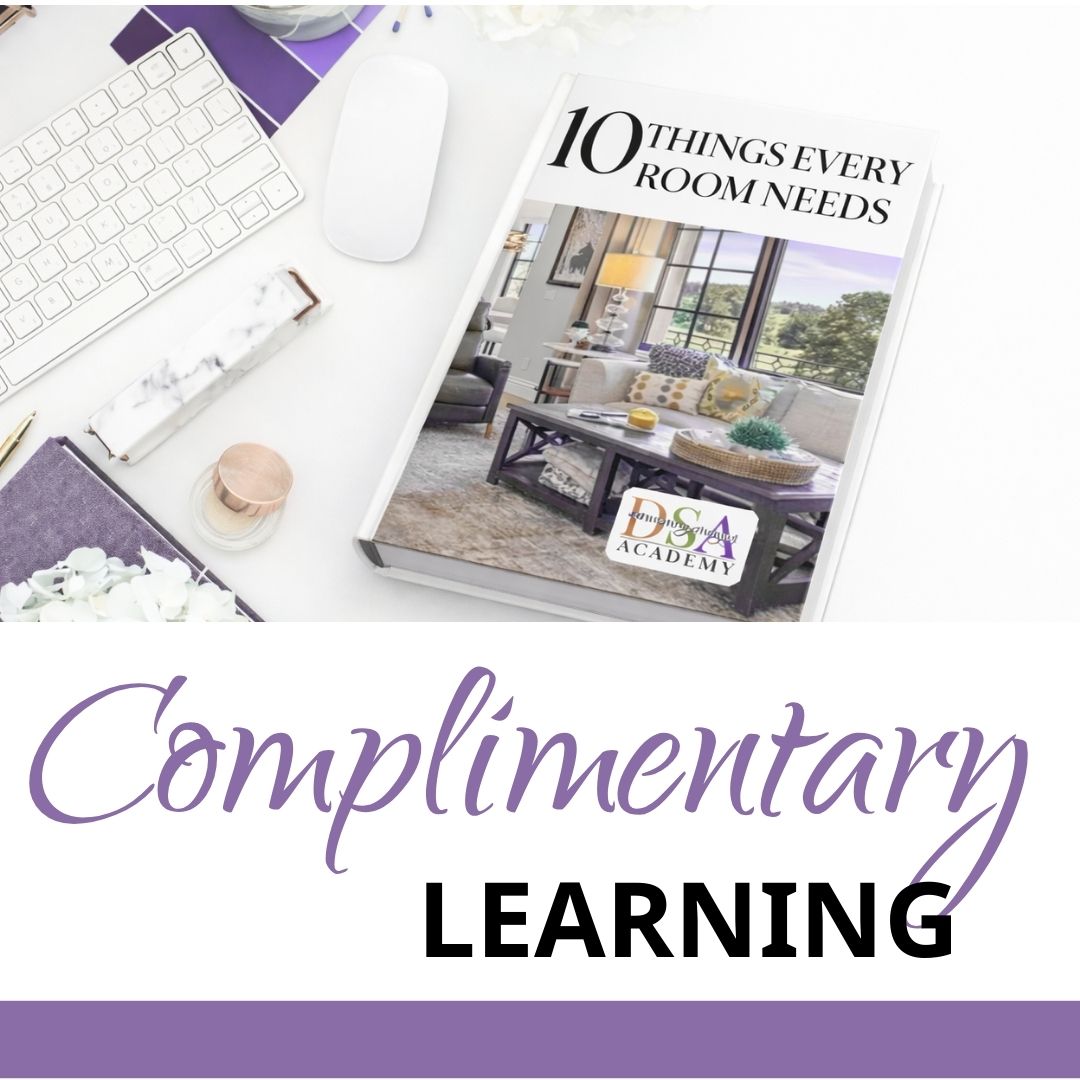 No matter where you are in your design journey, The Decorating & Staging Academy (The-DSA) has a path that fits. Serious about turning your talent into a business, check out our certification courses. Want to dive into a design niche, check out the specialty courses. Love continuing ed, check out the Design Lab, filled with great resources & mini-classes for a fee. Simply curious, check out our complimentary learning. From in-depth certifications to bite-sized inspiration, you’ll find training designed to help you learn, grow, and succeed.